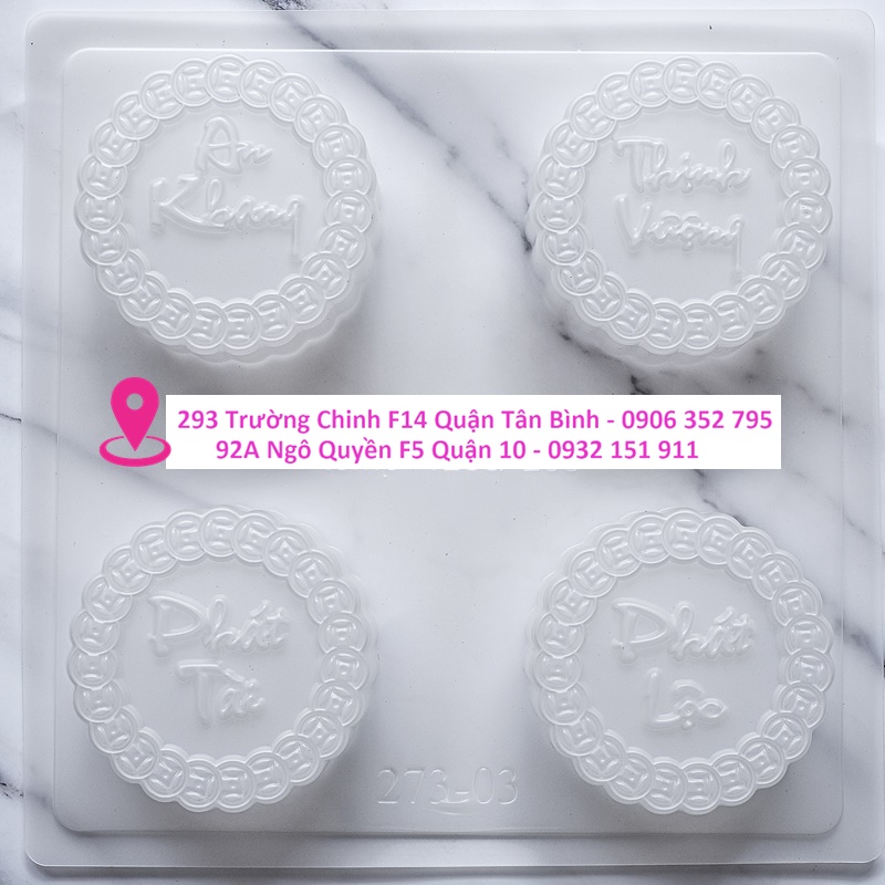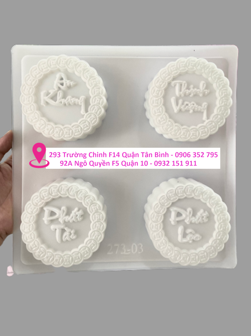 (COMBO 4 KHUÔN) Khuôn Nhấn Xôi, Khuôn Xôi, Khuôn Rau Câu Hình An Khang - Thịnh Vượng - Phát Tài - Phát Lộc - Khuôn Nhựa , Sắc Nét