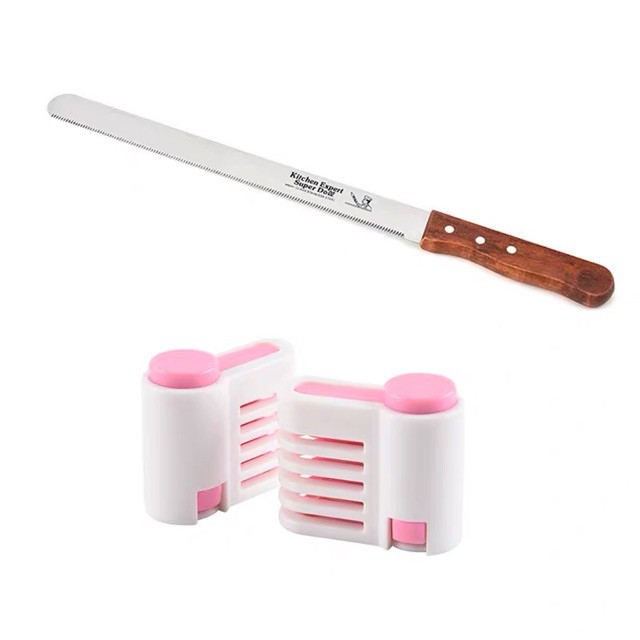 Kẹp chia tầng bánh là một trong các dụng cụ cơ bản trong làm bánh dùng để chia tầng bánh gato, bánh kem với mục đính là chia bánh gato làm nhiều tầng bằng nhau mà không làm xấu bánh, lệch bánh. Bạn cần có một con dao cắt bánh nếu bạn có dao cắt lưỡi răng cưa thì thật tuyệt , dao dài tối thiểu 30cm, sau đó kẹp 2 đầu lưỡi dao vào kẹp chia tầng bánh và đưa đều tay qua lại như khi mình dùng cưa nhé.