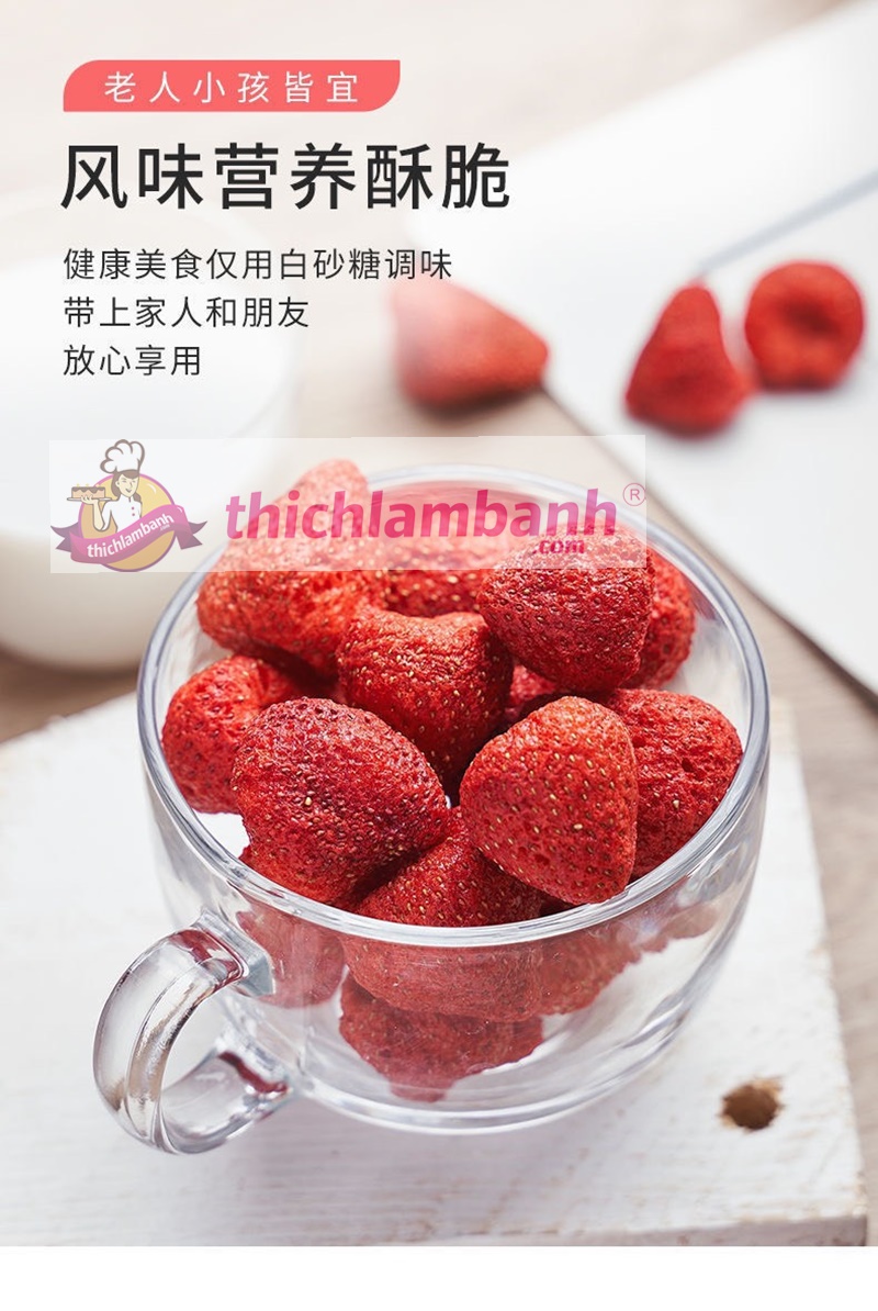 - Thành phần: 100% Dâu tây sấy lạnh