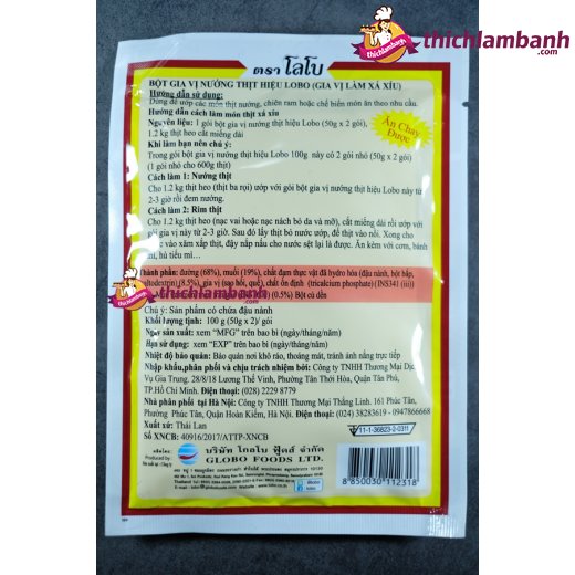 Gói gia vị làm Xá Xíu 100g là loại gia vị được pha sẵn vừa ăn, giúp món Xá Xíu có hương vị đặc trưng chuẩn kiểu Thái