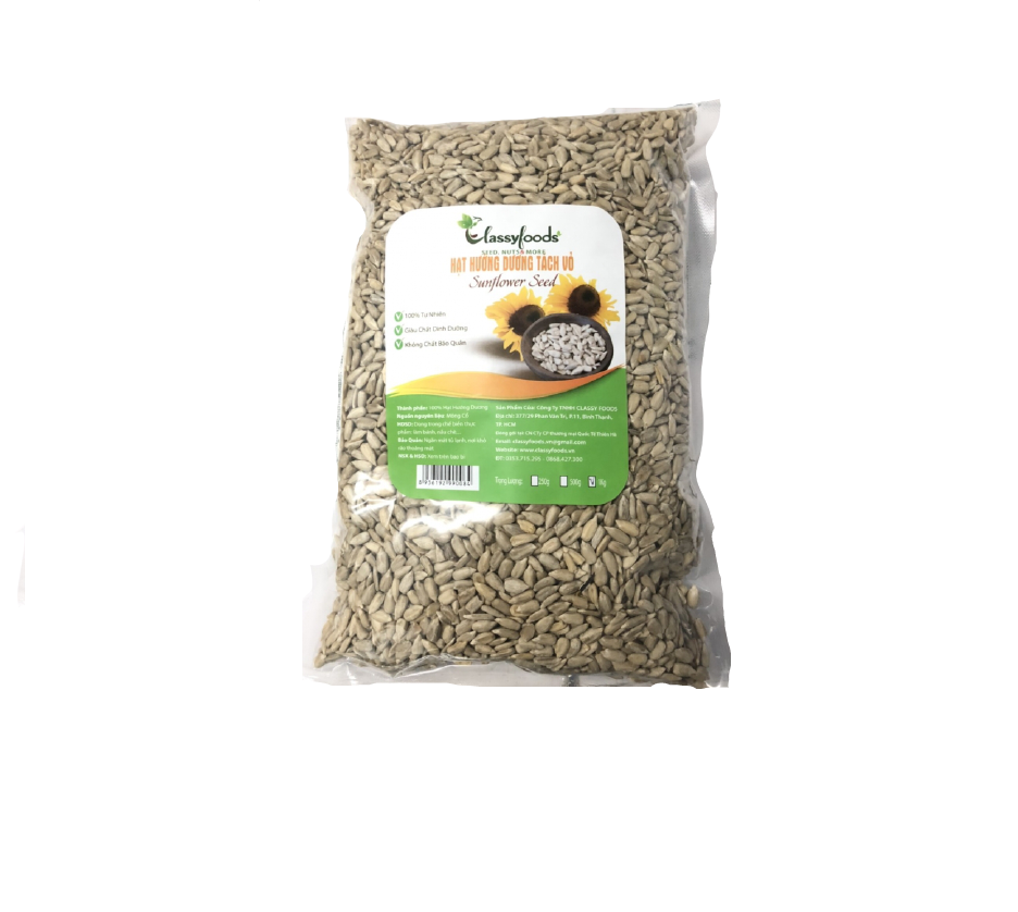 - Thành phần: 100% hạt hướng dương nguyên chất
