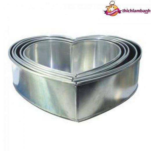 Khuôn tim bằng nhôm được dùng làm bánh bông lan, có kiểu dáng hình trái tim, dễ dàng vệ sinh sau khi sử dụng