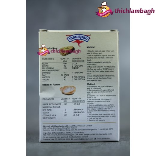 Hướng dẫn sử dụng: Trộn đều men khô mauripan với bột trước khi thêm các thành phần.