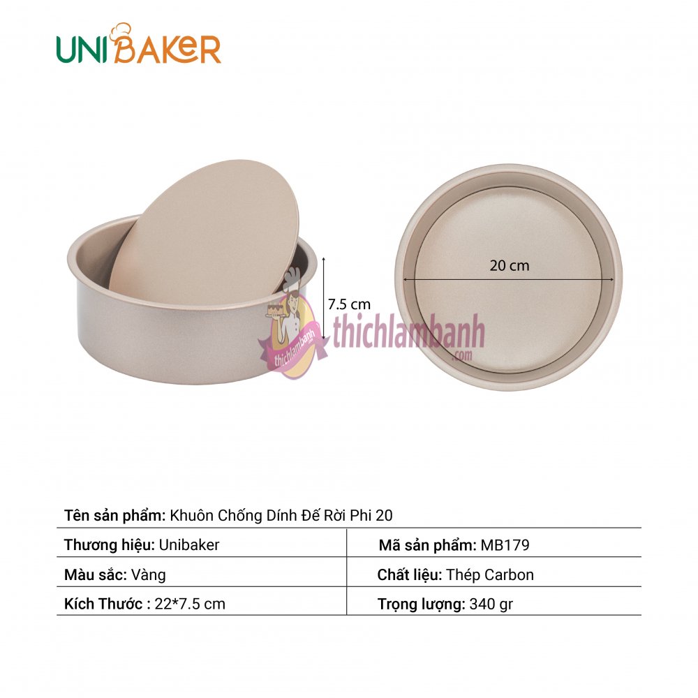 Khuôn tròn chống dính đáy rời 20cm UNIBAKER MB179