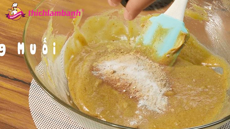 Cuối cùng cho bột mì vào và trộn đến khi tạo thành hỗn hợp bột đồng nhất.