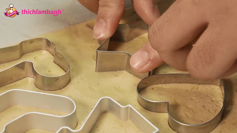 Cho bột vào tủ lạnh ủ trong 30 phút. Sau đó lấy ra, dùng khuôn bánh quy nhấn bột để tạo hình cho bánh.