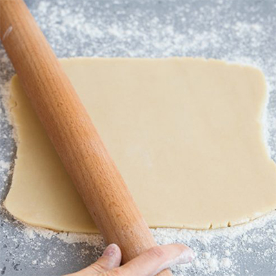 Đặt bột lên giấy nến, cán thành một tấm mỏng khoảng 5mm và cất vào tủ lạnh khoảng 1 giờ