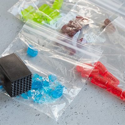 Tách riêng các màu kẹo cứng, cho mỗi màu vào 1 túi zip riêng và đập vụn