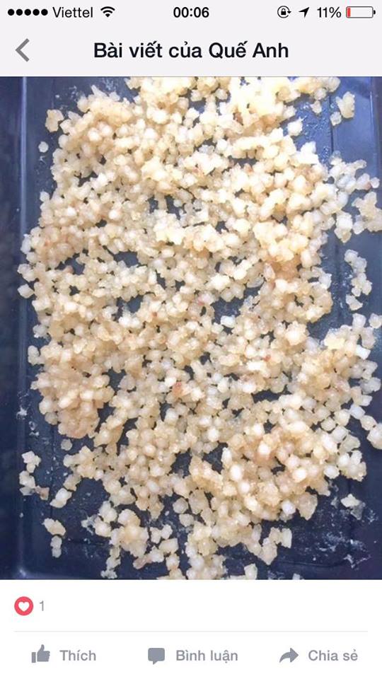 1. Mỡ gáy( cứng không chảy mỡ khi phơi, dùng mỡ xa hoặc lưng khi sấy hoặc phơi sẽ bị chảy mỡ) rửa sạch với nước muối, chần sơ với nước sôi, vớt ra để ráo cắt hạt lựu nhỏ ướp với 1/2 đường trong công thức phơi gió cho trong mỡ khoảng 3h ( vì làm k cho màu thực phẩm nên nếu bỏ qua công đoạn này khi cho ra sản phẩm sẽ thấy mỡ trắng đục, xấu, không hấp dẫn