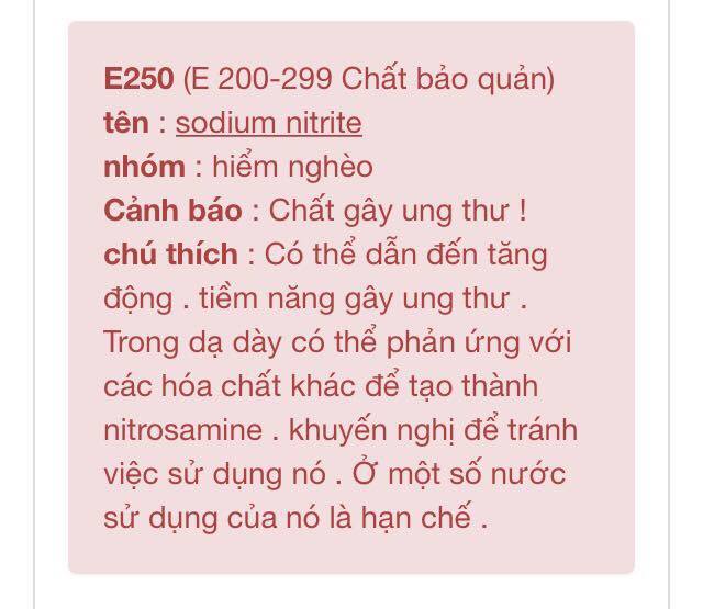 P/s tuyệt đối không sử dụng muối diêm hay muối đỏ nhé cả nhà thành phần chủ yếu của nó là nitrit(NaNO2) chất này châu âu đã cấm, nó phản ứng với acid amin có trong thịt sẽ làm đỏ thịt, đồng thời có tác dụng diệt khuẩn, nhưng khi chiên hay nướng nhiệt độ cao sẽ tạo ra nitrosamin là chất gây ung thư.