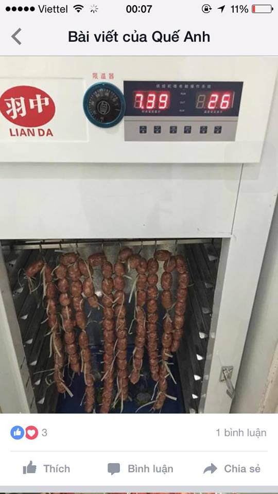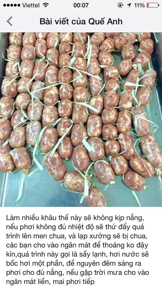 4. Do làm nhiều khâu sẽ k kịp nắng, nếu phơi k đủ nhiệt độ sẽ thúc đẩy quá trình lên men chua nhanh và lạp xưởng sẽ bị chua, các bạn cho vào ngăn mát k đậy kín, quá trình này gọi là sấy lạnh, hơi nước sẽ bốc hơi một phần, để nguyên đêm sáng ra phơi cho đủ nắng. Nếu gặp trời mưa thì tiếp tục cho vào ngăn mát hôm sau phơi tiếp.
