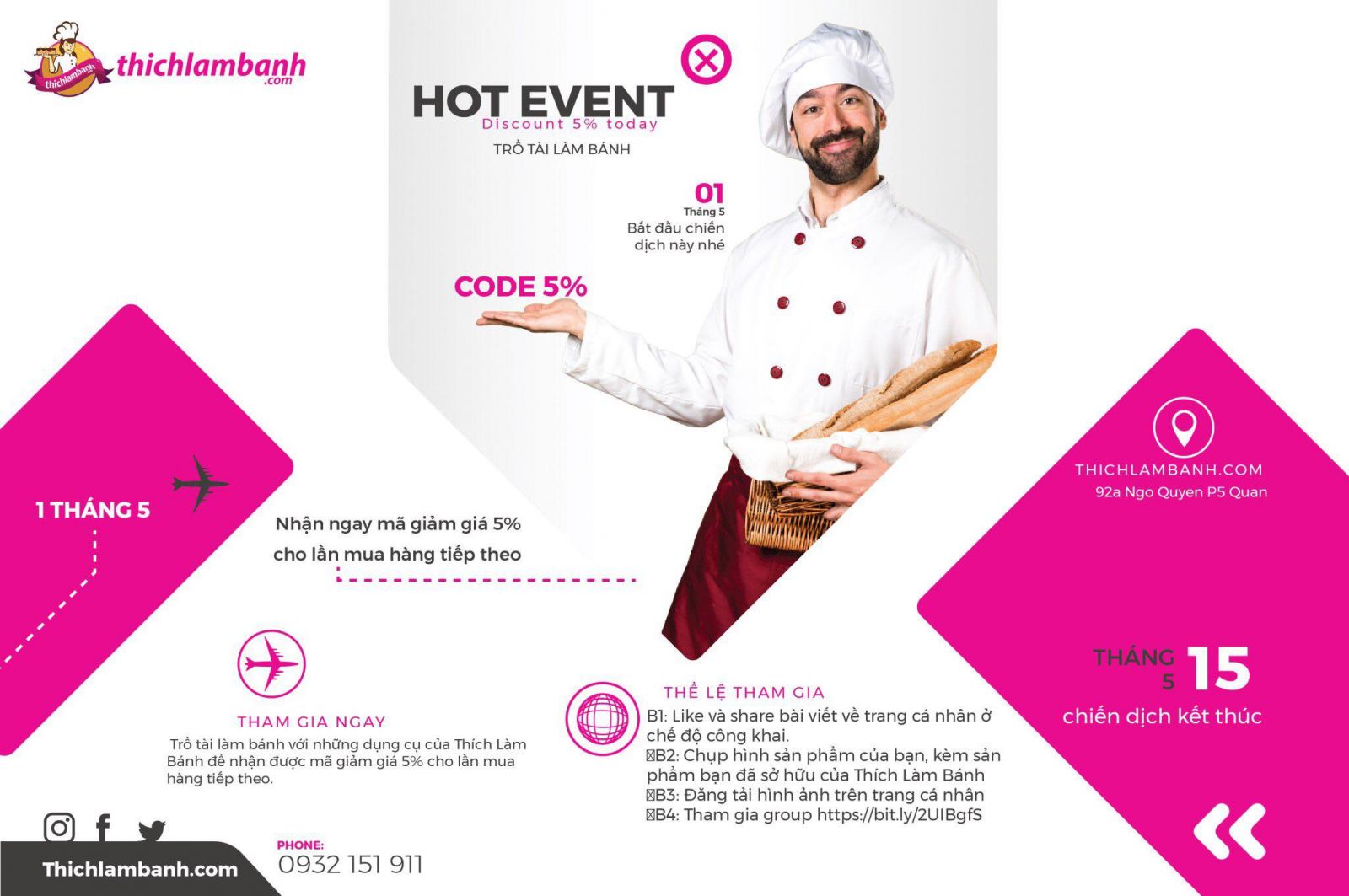 Trổ tài làm bánh với những dụng cụ của Thích Làm Bánh để nhận được mã giảm giá 5% cho lần mua hàng tiếp theo.