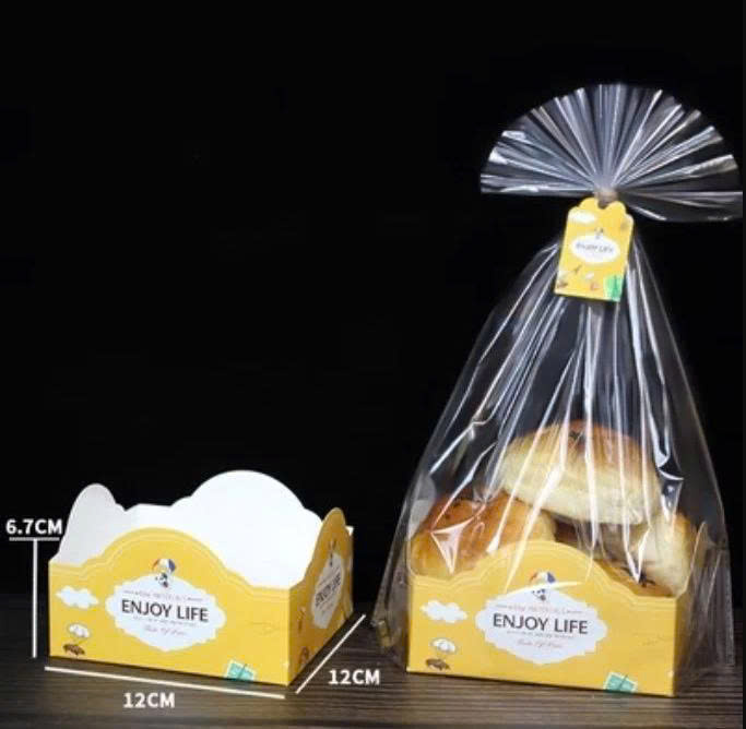 - Chất liệu cao cấp: Túi được làm từ chất liệu nilon OPP dày dặn, trong suốt, giúp bảo quản bánh quy giòn lâu. Đế túi được làm từ giấy cứng giúp giữ form túi, dễ dàng xếp chồng lên nhau. Kẽm cột giúp cố định miệng túi, giữ bánh quy bên trong.